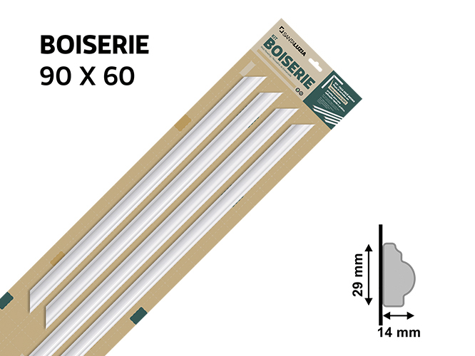 Com estilo europeu, o Boiserie vem conquistando espaço entre decorações modernas ou clássicas. Este kit contém 02 peças com 90cm cada e mais 02 peças com 60cm cada.
