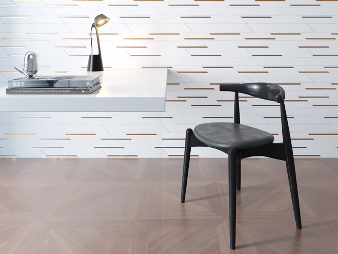 Chevron Branco com Friso Cobre - Revestimento de Parede Santa Luzia